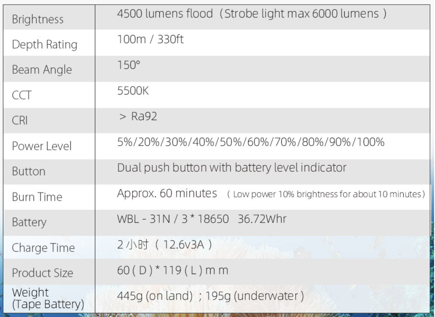 Compacta y muy robusta, es ideal tanto para grabación de vídeo, gracias a su luz con CRI: 92RA, como para fotografía submarina.